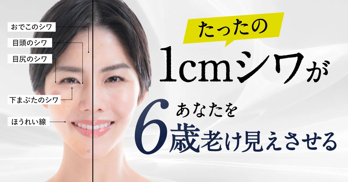ロート製薬の調査により、顔のシワたった1cmの差が見た目年齢を約6歳も老けさせることが分かっています。