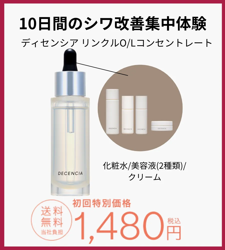 リンクルO/L コンセントレートにディセンシアの人気化粧品3点を追加したセットが、1,480円(税込)で試せちゃうんです!
